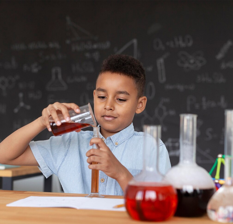 The Exploration Studio at The Vedanya School, Flower Valley, is a modern, well-equipped laboratory designed to support integrated learning across Physics, Chemistry, and Biology. Spacious workstations, safety-focused layouts, and age-appropriate laboratory equipment enable students to experiment, observe, and analyse with confidence. The structured design promotes collaborative investigations while fostering individual accountability and precision. This space encourages inquiry-based learning, critical thinking, and hands-on exploration. By connecting scientific concepts to real-world applications, it empowers learners to question, test, and discover—building both scientific temper and practical understanding.