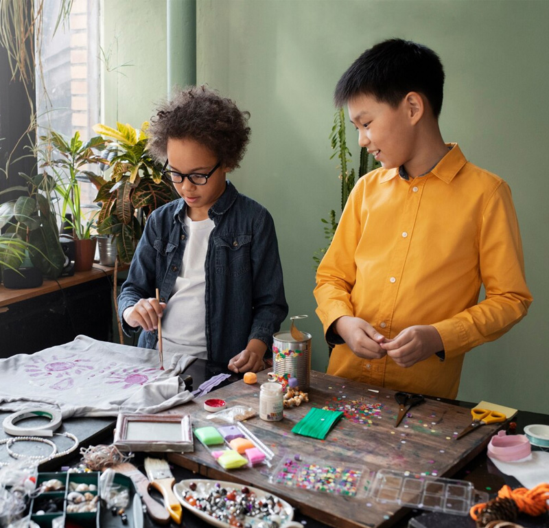 A creative haven where colours, textures and imagination come alive. Children express themselves through drawing, painting, craft and pottery, developing aesthetic awareness and confidence in their unique ideas.